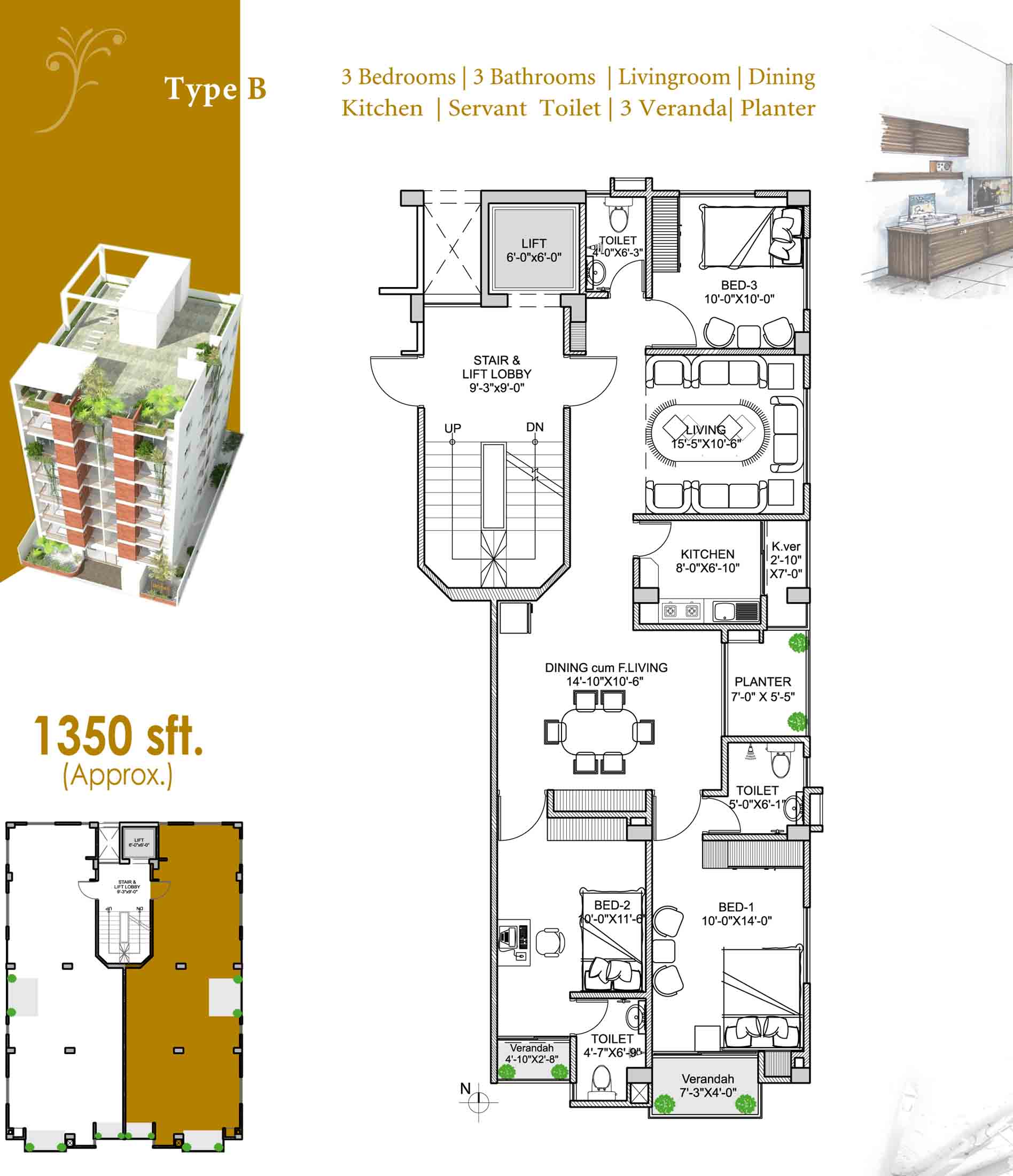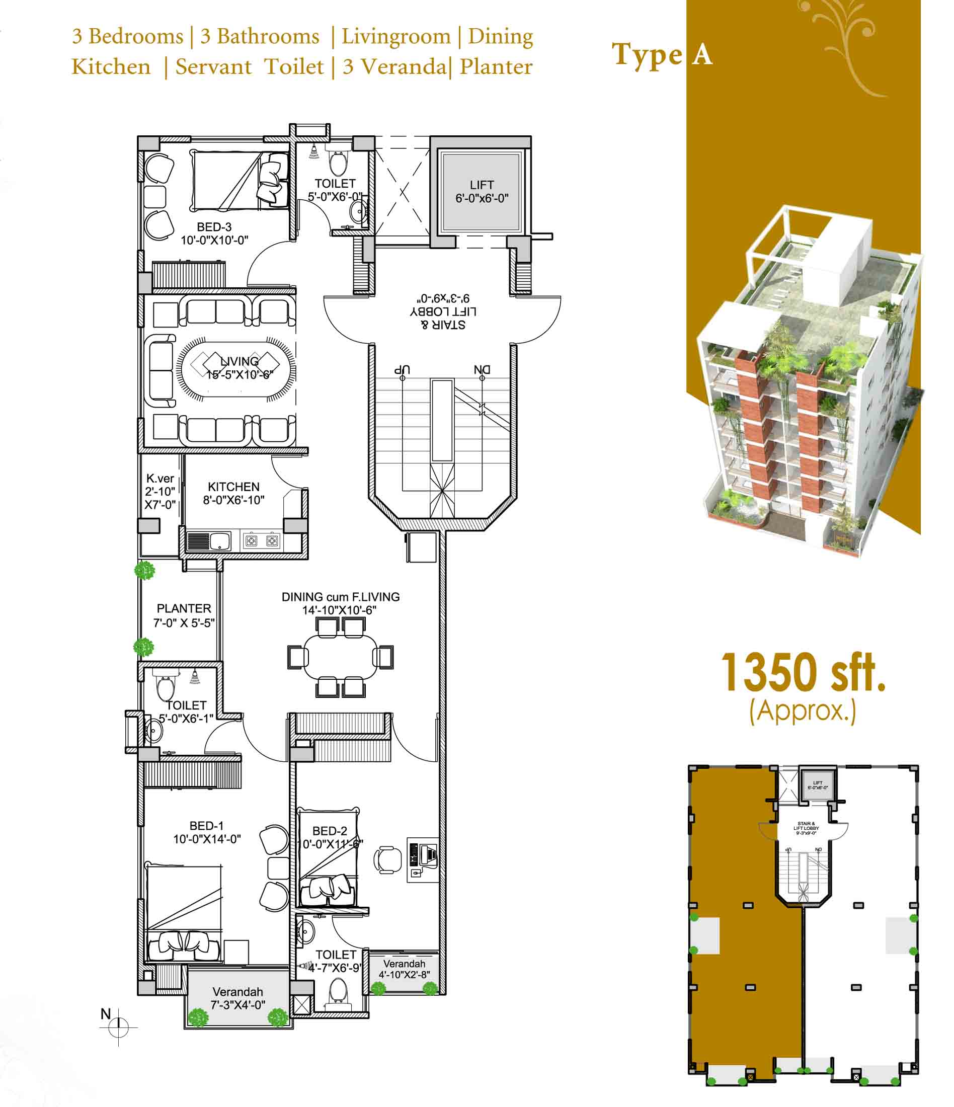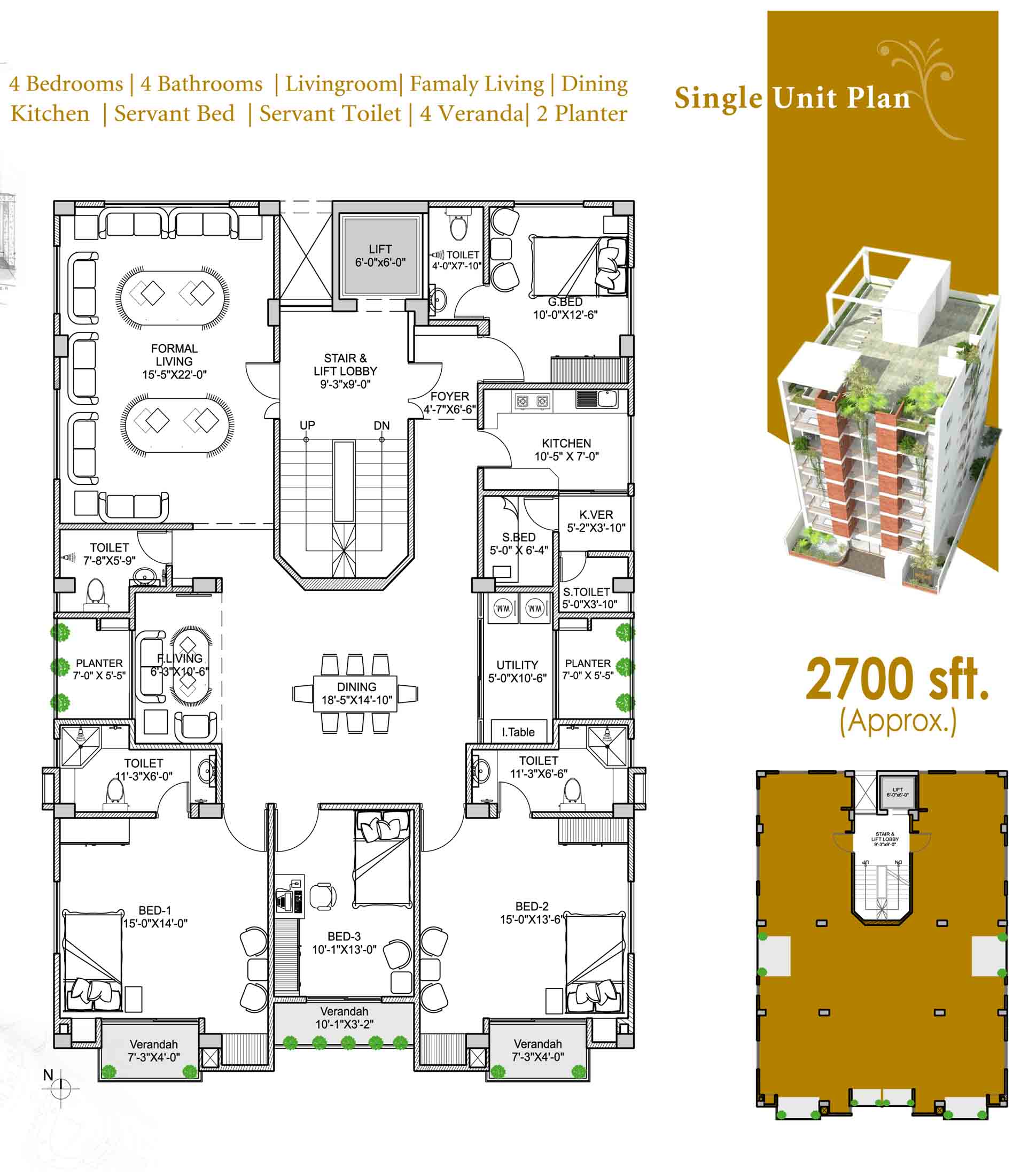 Apartment Size: 1350 / 2700 sft (Approx.)